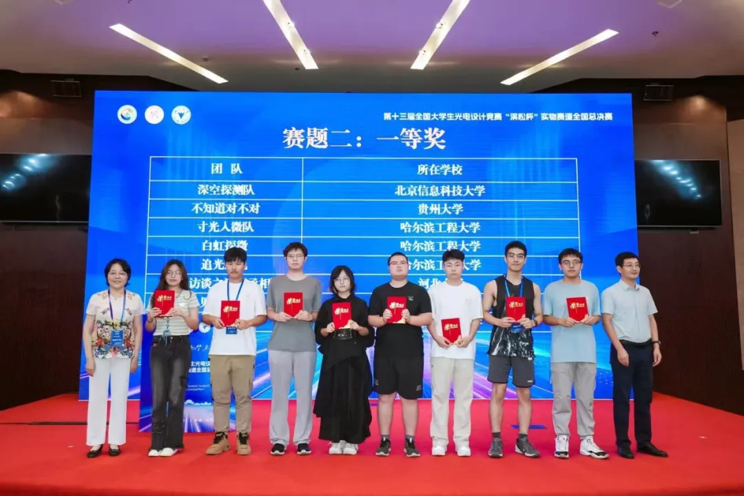 The 13th National College Students Optoelectronic Design Competition National Finals were grandly held at Zhejiang University from August 20 to 22, 2025. The team from Harbin Engineering University, led by teachers Zhu Zheng and Wang Ziming, consisted of 6 teams with 15 students. After intense competition, relying on solid professional knowledge, excellent practical ability and innovative spirit, our students finally won 4 national first prizes, 2 second prizes and 3 third prizes. The quantity and quality of national competition awards have reached a new historical high, achieving a historic breakthrough in winning the national first prize in the physical object track for the first time.